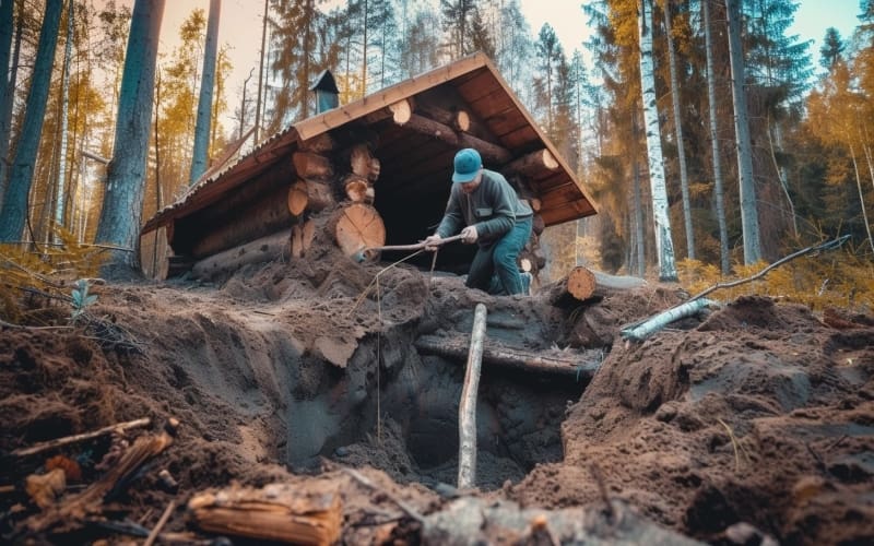 • Look for natural features such as caves, rock outcroppings, or fallen trees that can provide immediate shelter.