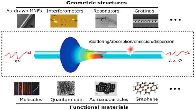 Fiber optic sensors are devices that use light to measure physical, chemical or biological parameters. They consist of a light source, an optical fiber and a detector. The light source emits light which is guided through the optical fiber to the detector. When the light interacts with the environment, it undergoes changes that can be detected by the detector. These changes can be used to measure the parameter of interest.